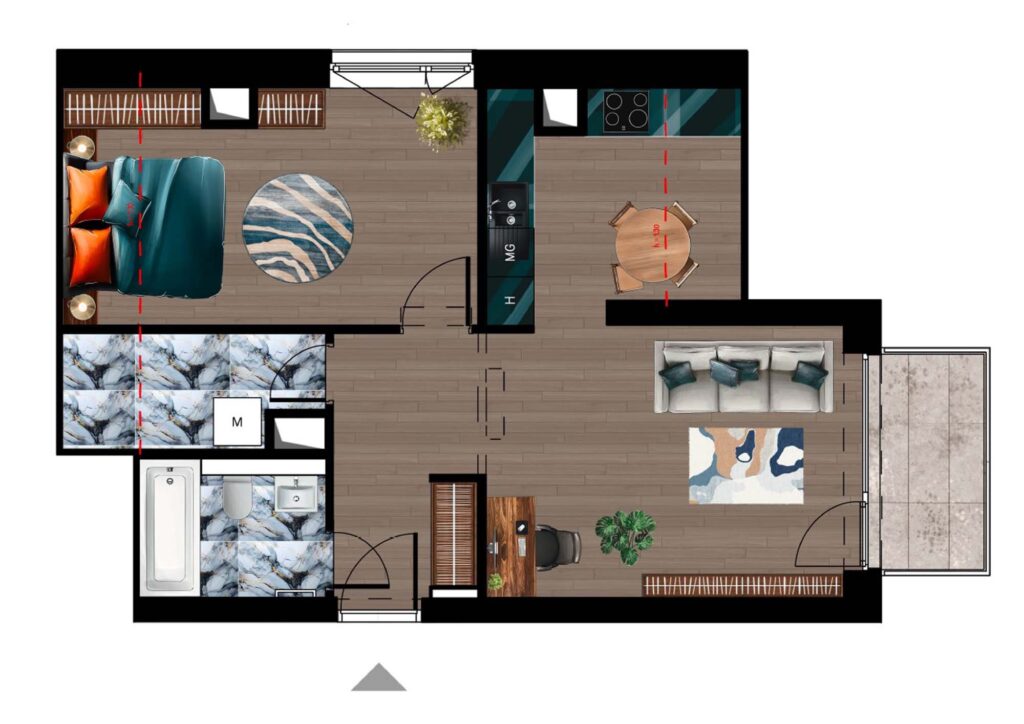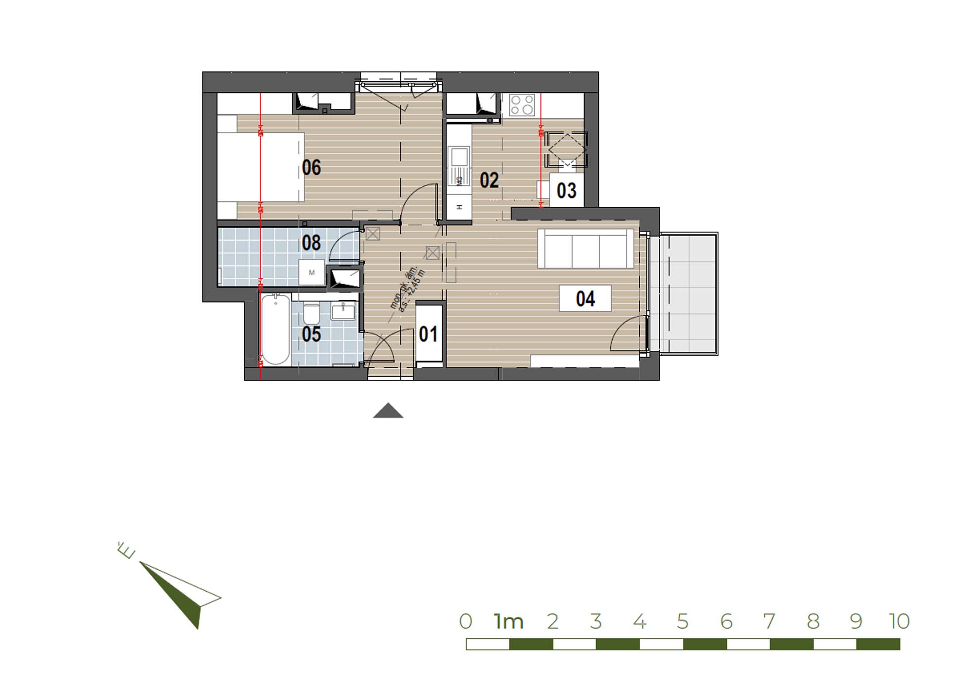 Jelen dokumentum és az azon szereplő információk tájékoztató jellegűek. Az ingatlanfejlesztő bármely a dokumentumhoz képesti eltéréssel kapcsolatban kötelezettséget vagy felelősséget nem vállal. Az alaprajzon található bútorok illusztrációk, felszereltség műszaki leírás szerint.