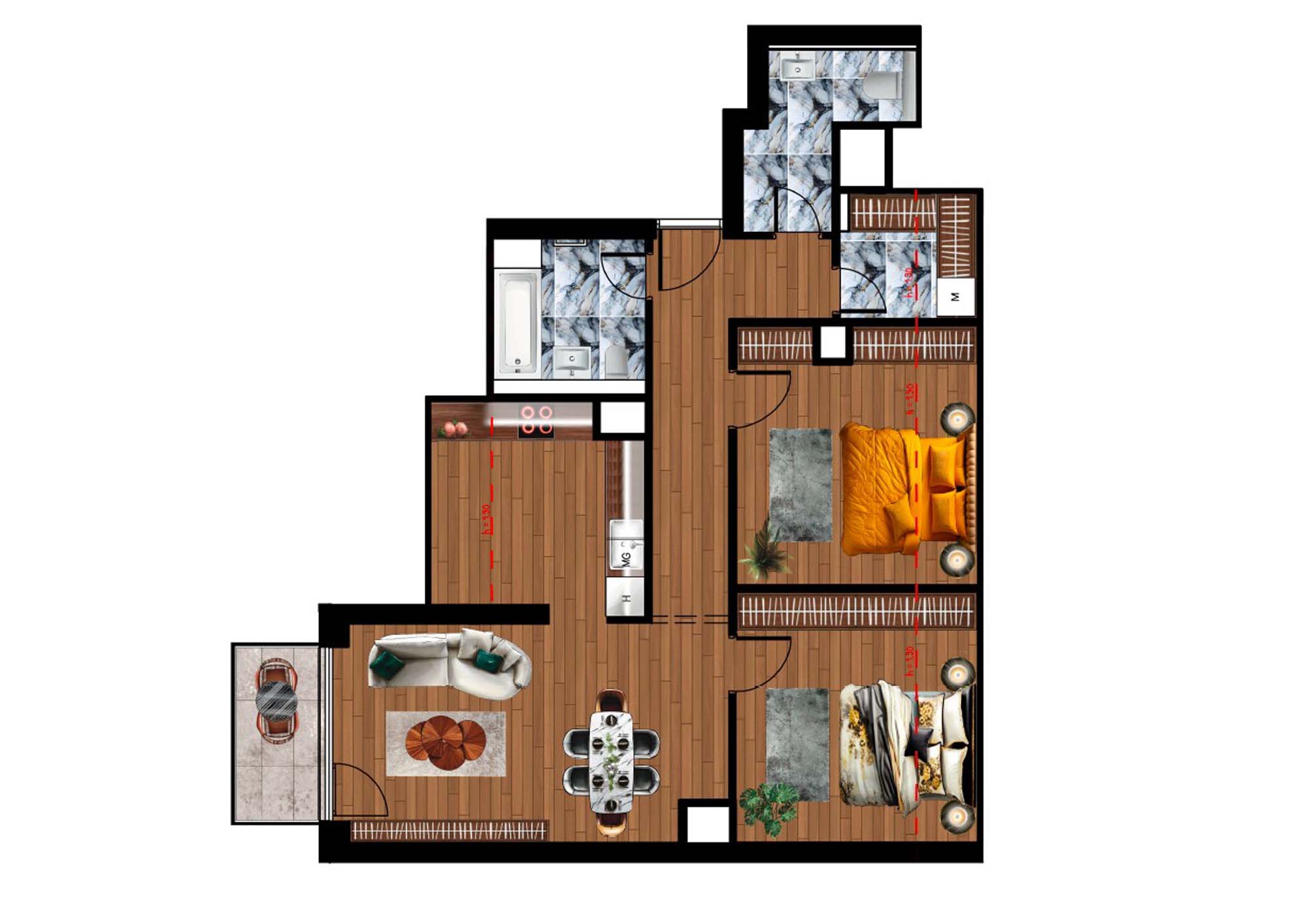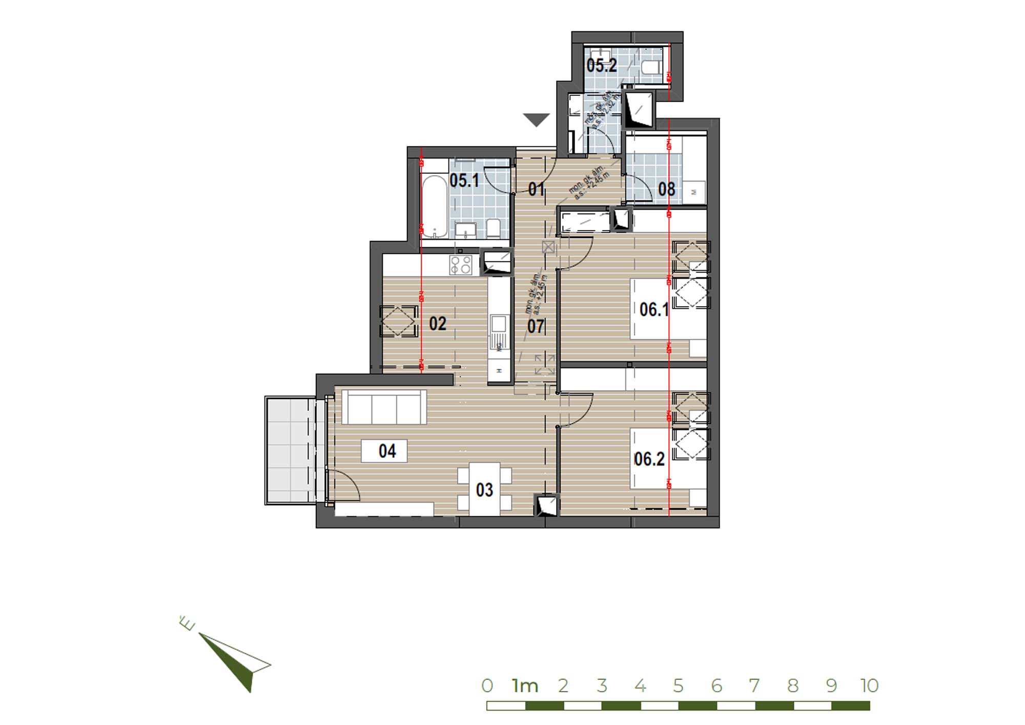 Jelen dokumentum és az azon szereplő információk tájékoztató jellegűek. Az ingatlanfejlesztő bármely a dokumentumhoz képesti eltéréssel kapcsolatban kötelezettséget vagy felelősséget nem vállal. Az alaprajzon található bútorok illusztrációk, felszereltség műszaki leírás szerint.
