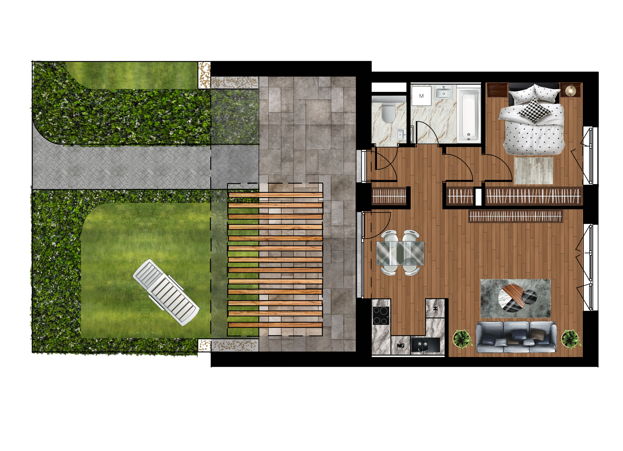 Világos, földszinti, kertkapcsolatos lakás a Dunaföldvár szívében épülő Hársfaliget Lakóparkban! A lakás ideális választás mindazok számára, akik nyugodt, zöld környezetre vágynak, mégis szeretnék élvezni a városi élet kényelmét.